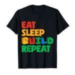 Eat Sleep Build Repeat レンガブロック ビルディングブリックビルダー Tシャツ |