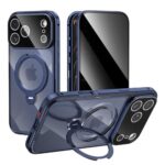 360度回転 覗き見防止 iPhone17 Pro 用 ケース フルーカバー リングスタンド 全面保護 Magsafe対応 縦置き横置き両方対応 アイフォン17Pro 全面カバー 両面ケース 9H強化ガラス ワイヤレス充電 一体型レンズ保護 PC背面 アルミバンパー,濃いブルー |