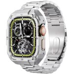 for Apple Watch バンド44mm 保護ケースベルト一体型アップルウォッチ 交換用 apple watch series 4/5/6/SE1/2に対応 316ステンレス製 TPUケース内蔵 二重保護 ビジネスバンド 耐久性 耐衝撃 おしゃれ 着脱簡単 長さ調節器具付き (シルバー, 44mm(Apple Watch Series 4/5/6/SE1/SE2))