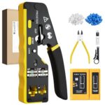 Proster RJ45 圧着工具 LANコネクタ かしめペンチ RJ45/RJ11/RJ12対応 CAT5/CAT6/CAT7対応 LANチェッカー CAT6コネクター&保護カバー 替刃 日本語説明書付属 電話線対応 LANケーブル製造 8P+6P圧着 |