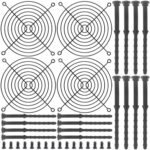 Xiatiaosann 120mmブラックフィンガーグリル、PCコンピュータ冷却ファングリル120mmガード保護カバー、ネジ付き、ゴム製PCファンネジ(4パック) |