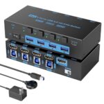 ANXQQ 8K KVMスイッチ HDMI、4 台のコンピューターが 1 つのディスプレイ HDMI 切替器を共有、EDID 機能をサポート、4 つの USB3.0 ポートを備えた KVM Switch、有線リモコンと電源アダプターが付属 |