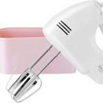 dretec(ドリテック) ハンドミキサー 泡立て器 電動 小型 コンパクト 軽量 5段階切替 ホワイト 電源コード、ビーターが収納できるケース付き |