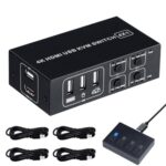 ELEVIEW 8K60Hz KVMスイッチ 4ポート HDMI2.1 4K120Hz対応 アルミ製 HDMI2.1 USB3.0 切替器 PC4台 ドライバー不要 簡単接続 手元切替 USBケーブル付き EHD-810N |