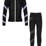 [Riismen] 子供用の女の子向けスポーツコート 长袖 スタンドカラー ジッパー付きスウェットシャツとズボンセット ダンス フィギュアスケート ワークアウト用 ライトパープル 10 |