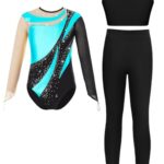 [Yeahdor] 子供用 女の子向け アイスフィギュアスケート用 長袖 レンガストーン入り コスチューム 体操用レオタード ボディースーツ 袖なしベスト付き ターコイズ 16 |