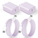 iPhone16 iPhone17 充電器 タイプc 充電器 type-c 20W PD 急速充電器 2個セット[MFi認証品/PSE認証済み] USB C-タイプc 充電ケーブル 2M付き usb-c コンセント式電源アダプター iPhone 16/15/Pro/max/iPad Pro/AirPods その他type-C機器対応(紫色X2) |