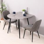 Mirai-Show ダイニングテーブルセット 2人用 半円 3点セット 北欧 壁付け テーブル 80cm幅 2人掛け ダイニングチェア 2脚セット おしゃれ カフェテーブルセット 丸型 二人用 イス 椅子 二人用 食卓テーブル 大理石風 コンパクト PUレザー Ento(エント) (ストーングレー/半円 + グレー / チェア2脚) |