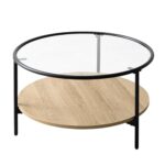 家具350 センターテーブル 丸 円形 ロー ガラス天板 収納棚 リビング おしゃれ 黒フレーム アジャスター ブラック/ナチュラル 147011 |