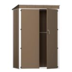 屋外物置 倉庫 大型 物置き スチール 大容量 戸外収納庫 大型収納庫 ガーデンシェッド おしゃれ 頑丈 防さび 防水 ドア 観音扉 換気口付き スチール物置 道具収納 室外物置 ベランダ ガーデニング 庭 (ブラウン+収納棚なし, 幅120*奥行き90*高さ185cm) |