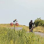ガーデンメタルの屋外風車、庭、庭のヴィンテージ自転車風車、自転車像の装飾、360°デュアルスピニング風車、3Dステンレス鋼メタル風力キャッチャー屋外自転車天気VA,赤 |