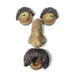 古い男の木の抱き、ヤード美術の彫刻の装飾老人の顔の木の装飾屋外の庭、木の庭のピーカの楽しい鳥、目を持つ面白い巣箱樹脂,D |