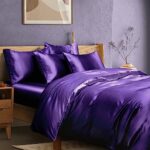 Manyshofu 6点 ダークパープル 布団カバーセット クイーンサイズ サテンボックスシーツ – 掛け布団ではありません 冷却サテン 掛け布団カバーセット (枕カバー4枚、掛け布団カバー1枚、ボックスシーツ1枚) |