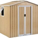 【可動棚&すべり出し窓付き】 物置 屋外 スチール 倉庫 床材補強フレーム付き 戸外収納庫 物置き おしゃれ 大型 収納庫 防さび ベランダ 防水 ドア スチール物置 屋外収納 ガーデニング 庭 (ナチュラル, 幅194cm*奥行162cm*高さ184cm 4132L) |