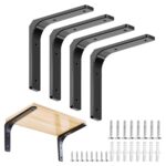 [Xpang]棚受け金具 棚受けブラケットL字金具 耐荷重95kg 壁掛け吊り棚 金具棚うけ 部屋 キッチン L字金具 スチール製 省スペース DIY 収納 アクセサリーネジ付 (黒, 250mm×200mm×30mm-4個) |