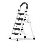 YldGrynor 脚立 5段 軽量 踏み台 折り畳み おしゃれ 手すり付き コンパクト 省スペース 耐荷重150KG 室内 屋外用 きゃたつ 滑り止め付き 持ち運び便利 step ladder (黒白, 5段) |