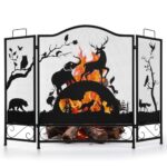 IRONWALLS 暖炉用スクリーン 装飾用 3パネル 長さ48インチ x 高さ32インチ 錬鉄製火場 スパークガードカバー アニマルパターン ブラックメタルメッシュ 暖炉スクリーンスタンド 単独 リビングルーム 寝室 |