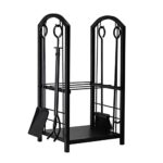 暖炉用品・アクセサリ 重金属薪ラック、2層大容量ログホルダー収納ラック、4つのツールを備えた暖炉ファイアピット薪ホルダー、45x30x74cm |
