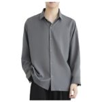 [Chenyoulan] メンズ シャツ 夏服 半袖 長袖 無地 アイスシルク 冷感 涼感 大きいサイズ ゆったり シンプル オシャレ カジュアル シンプルデザイン 通気性 快適な 柔らかい ワイシャツ 涼しい 夏 接触冷感 軽量 前開き ビジネス ひんやりXLグレー |
