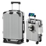 [SupTrip] スーツケース 機内持ち込み キャリーケース USBポート付き キャリーバッグ カップホルダー付き 隠しフック機能 多機能 大型 超軽量 静音 ダブルキャスター 耐衝撃 360度回転 軽量 ビジネス 修学 泊まる 旅行 出張 (シルバー, Lサイズ (7泊~長期旅行)) |