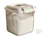 Amecke ホワイト 家庭用米びつ、大容量25kg、透明、防虫、防湿、滑車付き、米びつ、保存容器、食品グレード、穀物、小麦粉、米貯蔵タンク、商業用 |