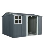 Homebliss 特大型スチール物置、290×232×195cm、約13平方メートルサイズ(13㎡)、引き戸式、換気口付き、約13119L収納 (ホワイトグレー) |