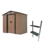PATAJP4U 物置 屋外 戸外収納庫 倉庫 防水 屋外用スチール物置 小型~中型 幅99cm ブラウン 耐候性・防水仕様 ロック付きドア 凹凸壁面 ガーデニング/DIY/ベランダ収納対応 |