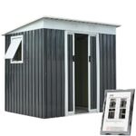 物置 屋外 大型 スチール製 収納庫 幅236cm×奥行303cm×高さ190cm 引き戸両開き 換気口付き 防サビ 防水 ガーデニング 庭 ベランダ ガーデン収納 (ブラック) |