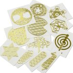 レジン デコ素材 メタル ステッカーシール 金属製 ゴールド 神聖幾何学模様 フラワーオブライフ 生命の花 六芒星 オルゴナイト エナジーシール 12種セット (タイプA) |