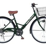 防災サイクル 26インチ ノーパンクタイヤ シティサイクル 折りたたみ自転車 TS26B-np シマノ6段ギア カゴ付 ライト サークル錠 街乗り 防災 災害用品 (モスグリーン) |