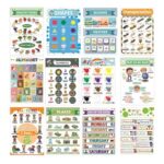 VILLCASE 12枚セット 英語学習ポスター 用 家庭向け 耐摩耗性 知育ポスター 英単語と形状認識 壁掛け教材 |