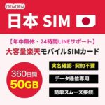 【日本SIM】日本プリペイドSIM 360日間 50GB Rakuten 5G 4G LTE 対応 SIMカード データ専用 SIM 安定した高速通信 SIMプリペイド japan sim card travel sim MEWMEWホーム |