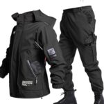 [BREAORTION] 作業着 ウインドブレーカー メンズ 冬服 上下セット 裏起毛 防水 防風 マウンテンジャケット ズボン アウトドアジャケット フード付 多ポケット 登山 釣り バイク 防寒着 スキー 保温 秋 冬 (ブラック, 4XL) |