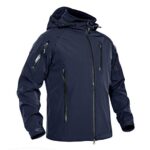 [KEFITEVD] ソフトシェルパーカー メンズ 防風 防寒 ジャケット バイク 防水ジャケット 裏ボアミリタリージャケット 釣り 冬服 防寒服 作業着 フード付き アウター 暖かい 紺 ネイビー M |
