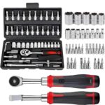 Laxewzul スリムラチェットセット パワーラチェットレンチ 手動 船舶用ツール ラチェットレンチキット コンパクト 高強度 精密 狭小作業 車両整備 DIY 工具 – 46 個 黒 |