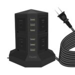Powerjcタワー式電源タップ 2層縦コンセント 8AC充電口雷ガード 過負荷保護 省エネ 延長コード1.5m オフィス/家庭給電用 ブラック |