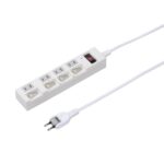 YAZAWA 節電タップ 【 4個口 / 5m / ホワイト 】個別&集中スイッチ 雷ガード ブレーカー付 ホコリ防止シャッター L型プラグ コンセント |