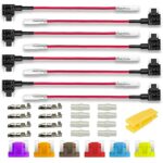 Kiligen 4個12V 24V Micro2小型回路ヒューズタップ キット、ワイヤーハーネス付き自動車フラットタイプブレードヒューズホルダー、6個 Micro2 ブレードヒューズ(5A/10A/15A各2) +1個ヒューズプラー |