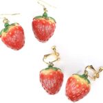 両耳用 イチゴ 苺 ピアス イヤリング レディース オシャレ カワイイ ドロップ ストロベリー 果物 食玩 リアル カフス ねじ式 ベリー イヤリング |