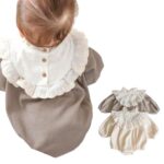 [giminuo] ベビー女の子用レースフリルロンパース、ブラウン&ベージュ、2点セット (ベージュ, 66cm) |