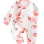 [Hapipana] ベビー肌着 新生児服 ロンパース 長袖 コットン100% 可愛い動物柄 前開きデザイン サイズ調整可能 男の子 女の子 柔らかい肌触り 通気性良好 春秋向け 退院着 出産祝い(桃と兎,66) |