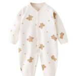 [Hapipana] ベビー用ロンパース カバーオール 長袖 ベビー服 綿100% 新生児服 前開きタイプ かわいい 女の子 男の子 赤ちゃん 総柄 ニット 肌着 ベア柄(鹿ちゃん,66) |