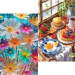 Amyaker ダイヤモンドアート キット 丸いビーズ 全面 2個セット ダイアモンドビーズ絵画キット DIY 手作り絵画 モザイクアート 5D モザイクアート ダイヤモンド塗装 全面貼り付けタイプ 30x40cm グルメ 花 |