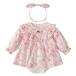 Baby nest ベビー服 女の子 綿100% ロンパース 春秋 お出かけ おしゃれ 新生児 誕生日 ギフト 出産祝い ヘアバンド付き ピンク 73 6-9ヶ月 |