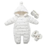 Baby nest ベビー服 ジャンプスーツ 長袖 ロンパース ダウンコート カバーオール クマ コート 手袋 足袋 防寒 秋冬用 男の子 女の子 白 73 6-9ヶ月 |