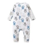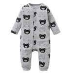 Baby nest ベビー服 長袖 カバーオール ロンパース パジャマ 赤ちゃん 新生児 男の子 北欧風 動物柄 ルームウェア 可愛い 綿100% 柔らかい グレークマ柄 73 6-9ヶ月 |