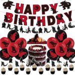 BerYaoYao バースデーパーティー用品デコレーション、ゴジラバースデーパーティーデコレーション、ゴジラ対。 コングデコレーション、バースデーセットのバルーンデコレーションバナーケーキトッパー |