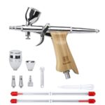 Bucasso エアブラシ ダブルアクション トリガー式 ハンドピース ヘッドアセンブリ交換可能 エアブラシキット 3種類ノズル 0.3mm 0.5mm 0.8mm 3種類カップ 3cc 7cc 11cc 塗装 プラモデル ホビー スプレー DIY (W002-Burlywood) |