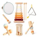 Btuty オルフ楽器セット木製打楽器セット 面白いインタラクティブゲーム 手と目の協調発達 誕生日プレゼント タンバリン、8音色木琴、レインサウンドチューブクラリネット |
