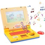 ChoyClit キッズコンピュータ | 本物のマウスとキーボードを備えた幼児用コンピューター – 細かい運動技能訓練、音楽啓発のための多機能赤ちゃん学習玩具 (イエロー) |